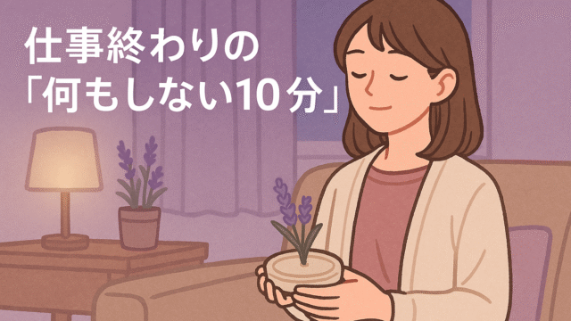 ゆるめる習慣 仕事終わりの「何もしない10分」 2025年11月3日 秋山チャチャ|シンプルに整え隊 https://ochacha1212.com/wp-content/uploads/2025/10/header_centered_fullunderline_gap56_2400x800.webp シンプルに整え隊